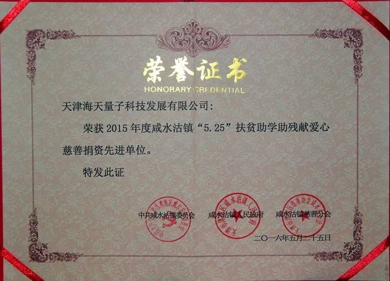 多宝电竞物联获2015年度“5·25”扶贫助学助残捐款先进单位称号