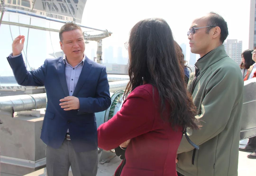 多宝电竞物联创新中心副主任王立波带领参观顶层太阳能装置