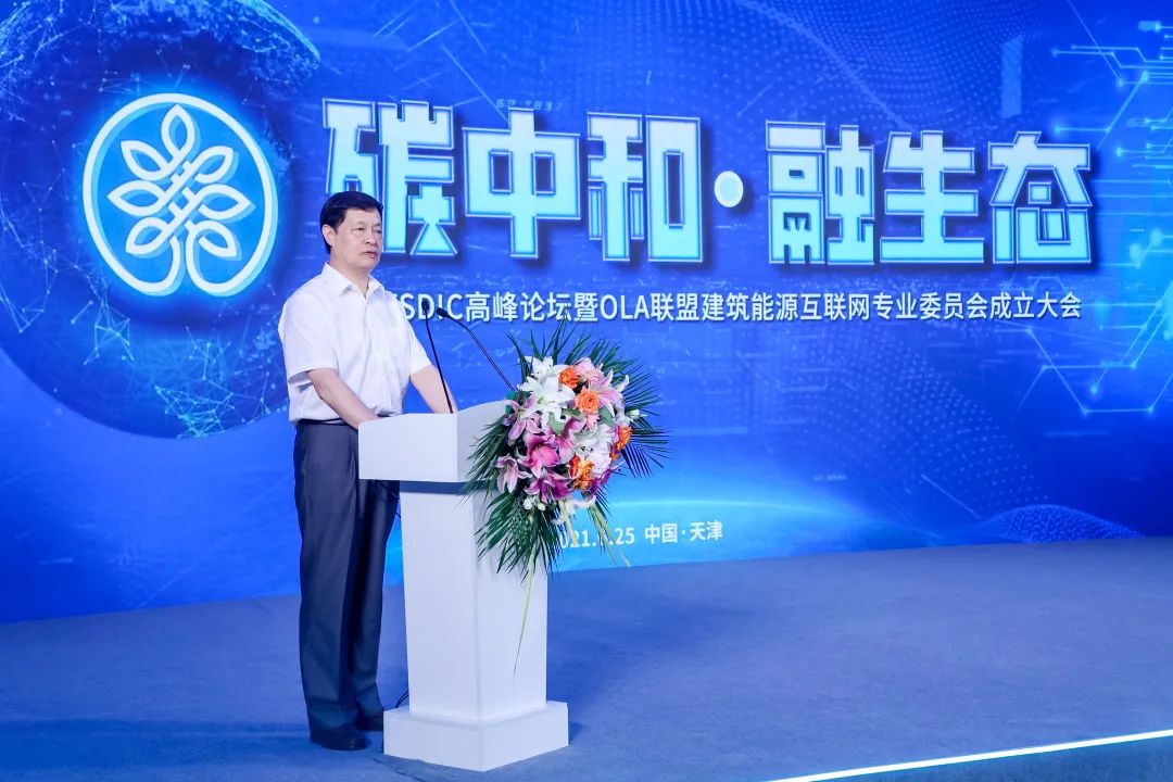 中国工程院院士倪光南,天津市科学技术局局长戴永康,天津市工信局局长尹继辉,中国对外贸易中心党委书记/主任、中国对外贸易中心(集团)董事长、国家会展中心(天津)有限责任公司董事长储士家,中国房地产业协会副会长兼秘书长陈宜明等出席,天津多宝电竞物联科技股份有限公司董事长、中国物联网技术与可持续发展产业联盟理事长、OLA联盟建筑能源互联网专业委员会理事长刘柏呈发表主题讲话。