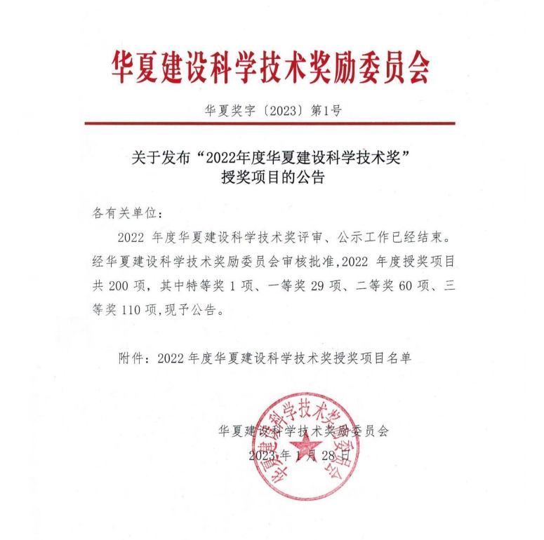 日前,课题成果——大型BIM设计施工软件研发与推广应用获得了2022年度华夏建设科学技术奖一等奖,奖项由天津多宝电竞物联科技股份有限公司、中建工程产业技术研究院有限公司、广联达科技股份有限公司、北京盈建科软件股份有限公司等单位联合申报。
