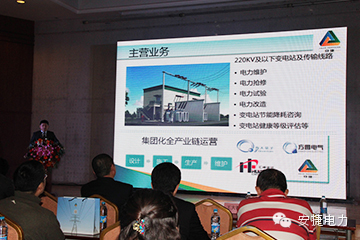 会议中,多宝电竞电力总经理米玉淼为大家详细介绍了“变电站智能运维模式”在园区企业中的应用,传递了多宝电竞“省钱、安全、专业、节能”四大服务优势。